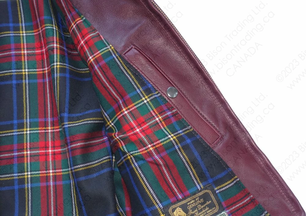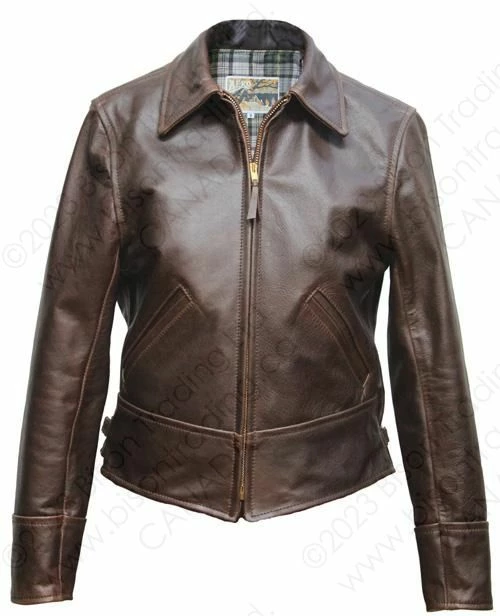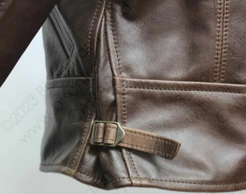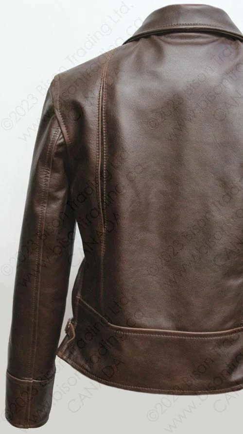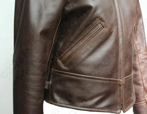 “The Cossack”, takes it’s inspiration from the sports jackets of the 1930s . Our new design team have created a unique jacket that, although not a reproduction of any particular original 1930s jacket, would fit seamlessly into the advert from a 1935 Sears catalogue in the picture bar. Our short Cossack leather jacket closes by a genuine deadstock Talon zipper, a fairly new invention in the early 1930s, the zippers we use actually date from the 1950s but are identical to the zippers of the late 1930s. The jacket has two deep handwarmer pockets lined on Moleskin, giving both warmth and security, the unusual back design features two hidden pleats while the side adjustment uses an inverted “Vee” panel construction, a throwback to the military flight jackets of the early 1920s. The result is a practical and stylish Winter jacket.