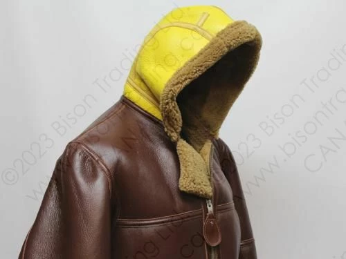 Hooded “Irvins” were made especially for The Fleet Air Arm, Coastal Command and Air Sea Rescue, the yellow hood proving to be an invaluable aid in helping air crews spotting downed fliers in the sea. The hood also provided much needed protection in the extreme weather conditions often encountered the North Atlantic and the North Sea.