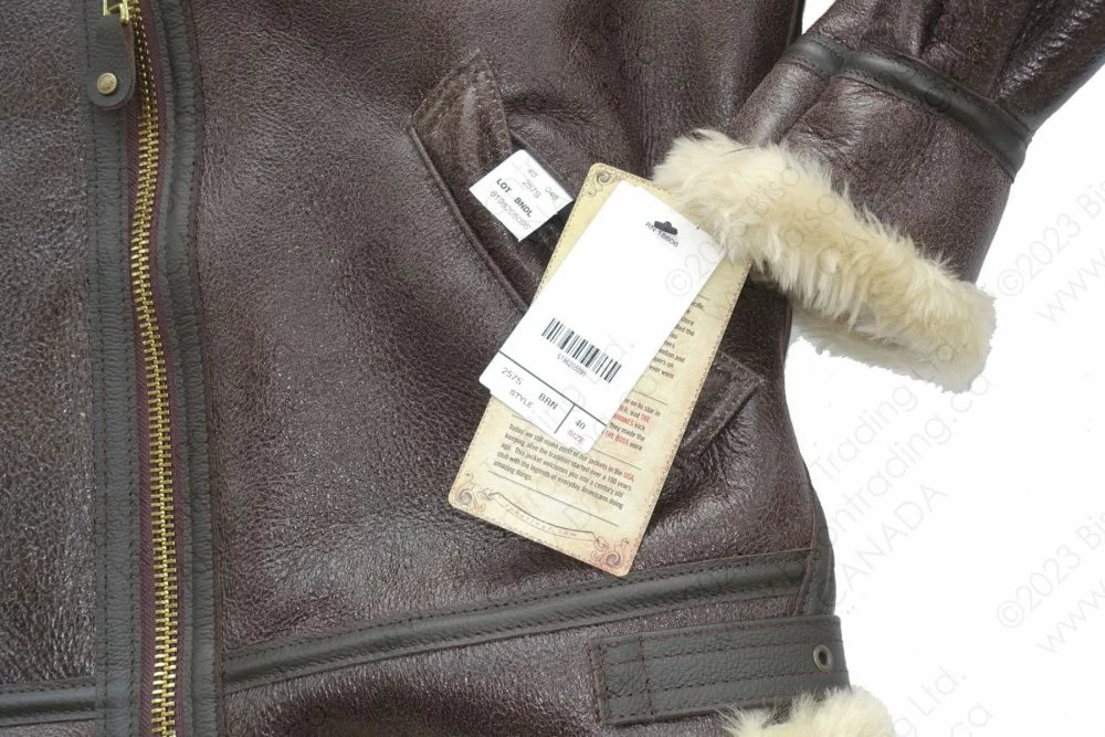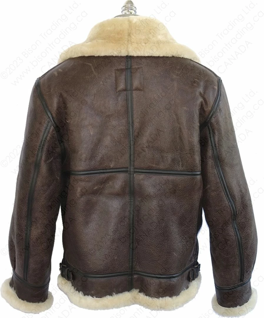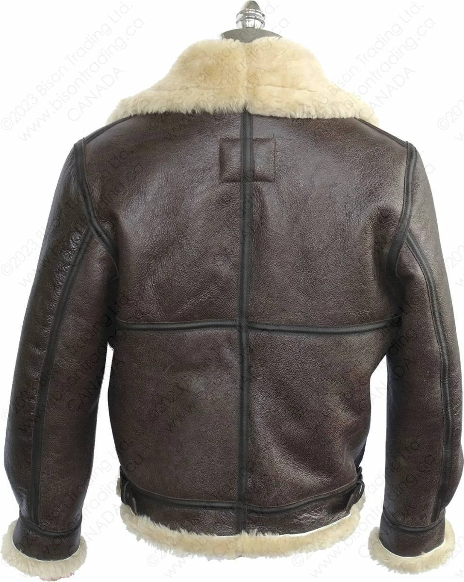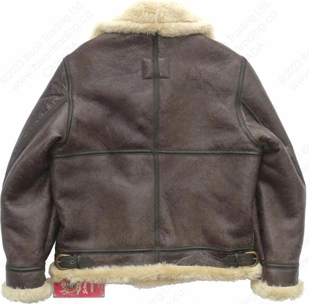 This B-3 is the classic WWII sheepskin leather “Bomber” jacket.