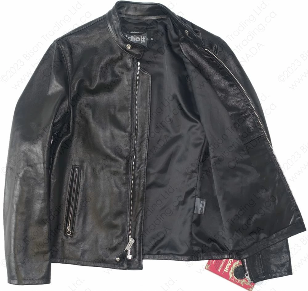 Schott NYC uses this semi aniline cowhide to help your leather jacket or “second skin” resist the elements. Motorcycle jackets need to be as tough as the people wearing them. You will enjoy the benefits of both stain resistance and added protection while riding on your classic motorbike or out on the town. Nickel plated brass hardware complete this timeless American made classic that is built to last.