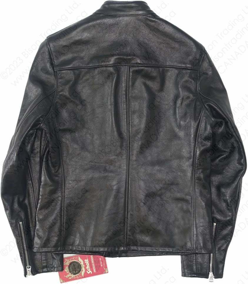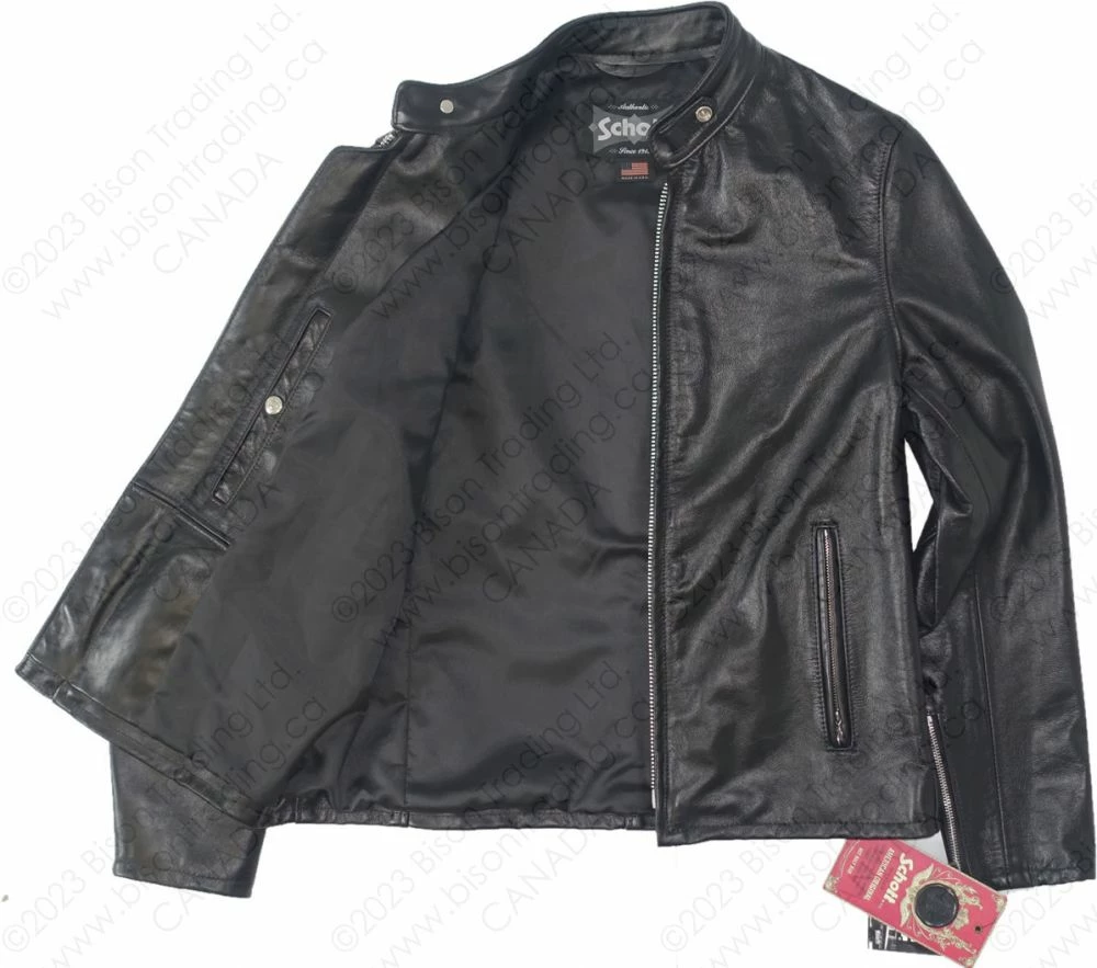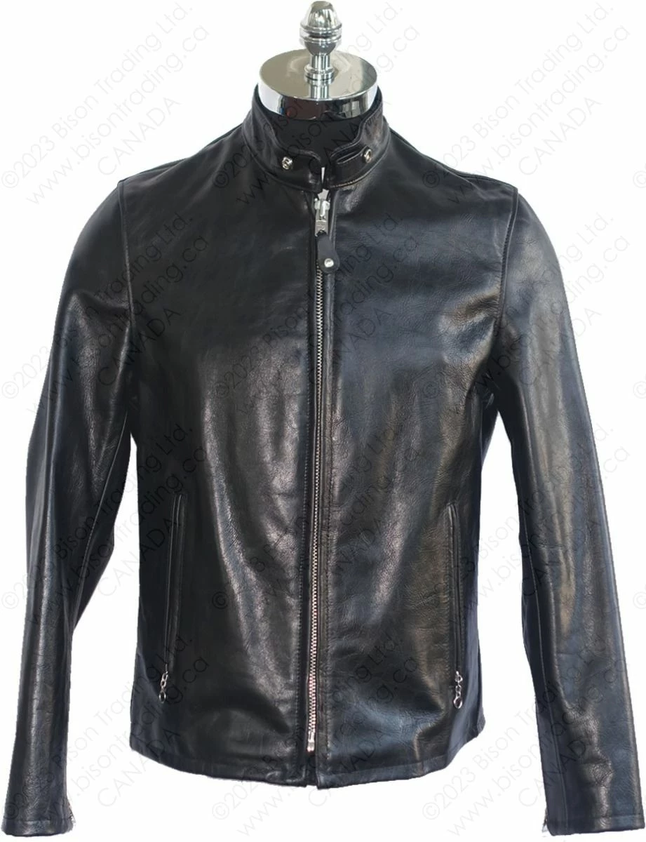 Rooted in tradition, the Schott Model 654 continues this cafe racer style from the 50’s. Based on early racer designs the 654 has changed a bit but the overall concept remains the same. Design a tight fitting, no frills mens leather jacket with a cool, refined look. We feel our Café Racer has accomplished this and make a profound statement. Schott continues production of the classic Café Racer motorcycle jacket style, as always, right here in the U.S.A.