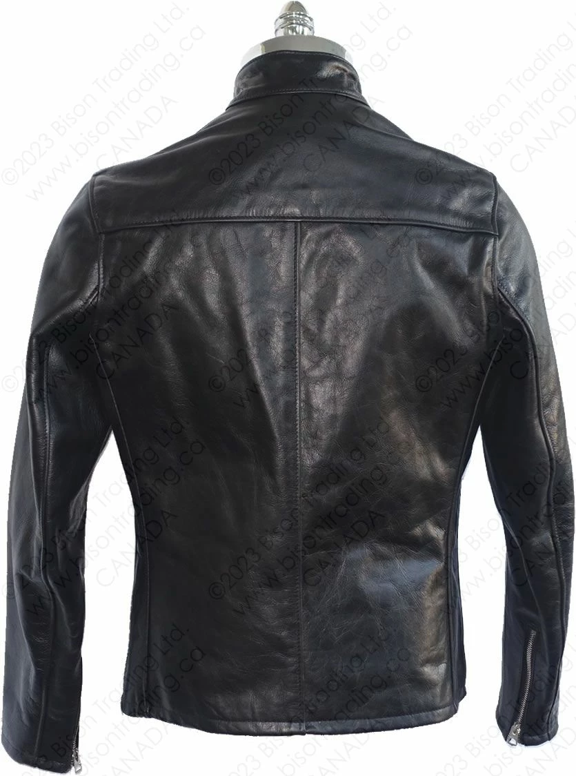 Our customers asked for us to give them a lighter weight café racer style leather biker jacket and we feel that model 654 answers their call. Schott Model 654 leather jackets for men are made with chrome-tanned, drum dyed, medium weight cowhide leather. This hide has a medium to soft “hand”, a shiny finish and breaks in quick and easy. Our medium weight cowhide is processed to provide many years of use without the need for treatments or conditioners. The Perfecto model 654 moto jacket was designed for warmer weather riding or hitting the local club…you decide.