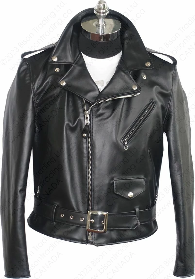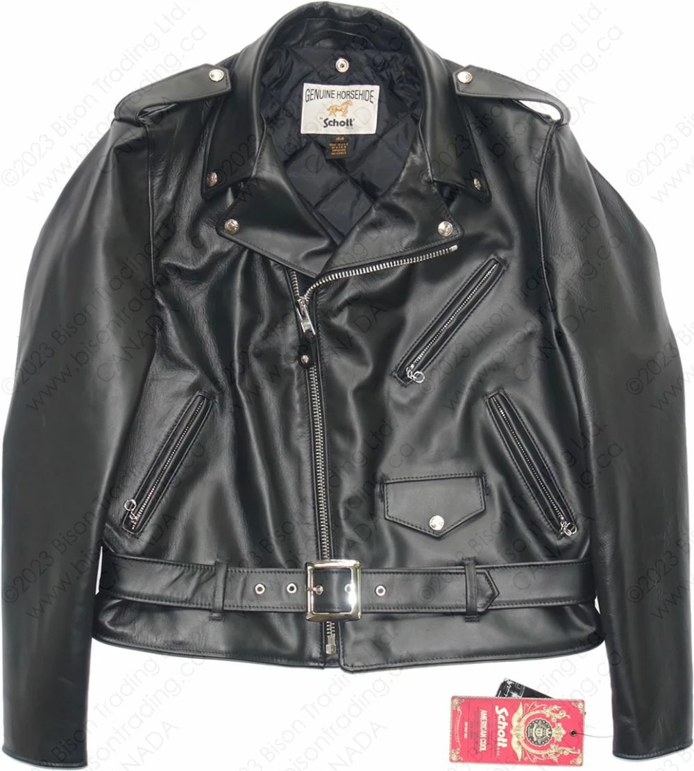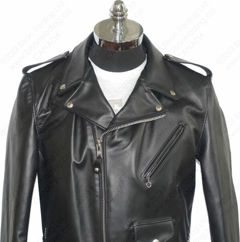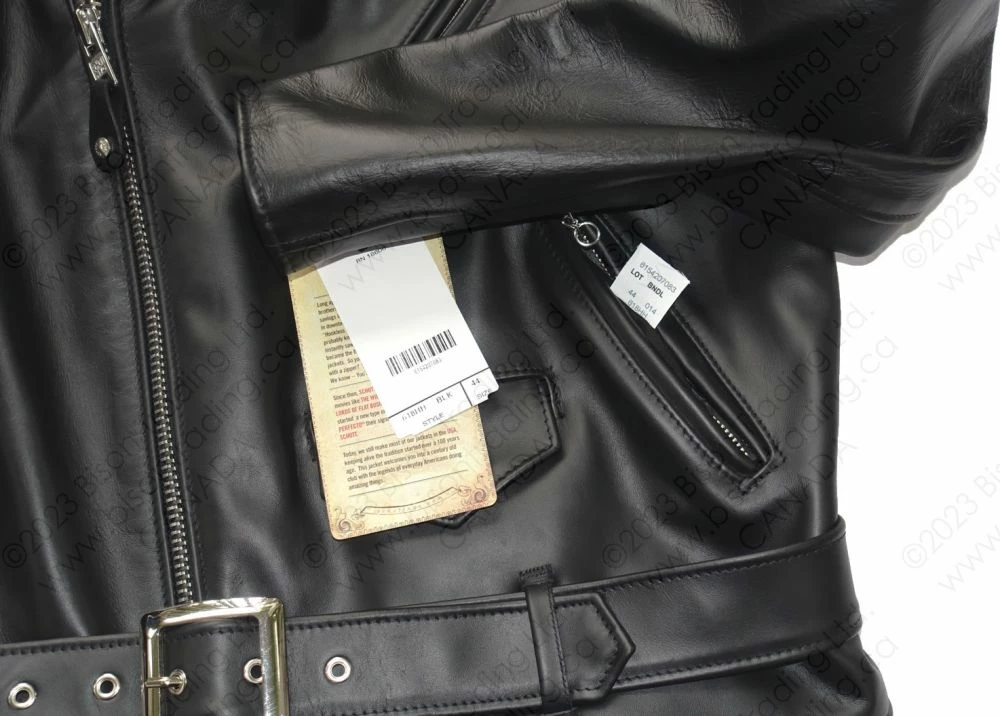 Our classic Perfecto jacket now available in black horsehide leather. Hand made right here in our factory. Similar to the 618, this jacket runs slim, so order one size larger than normal.