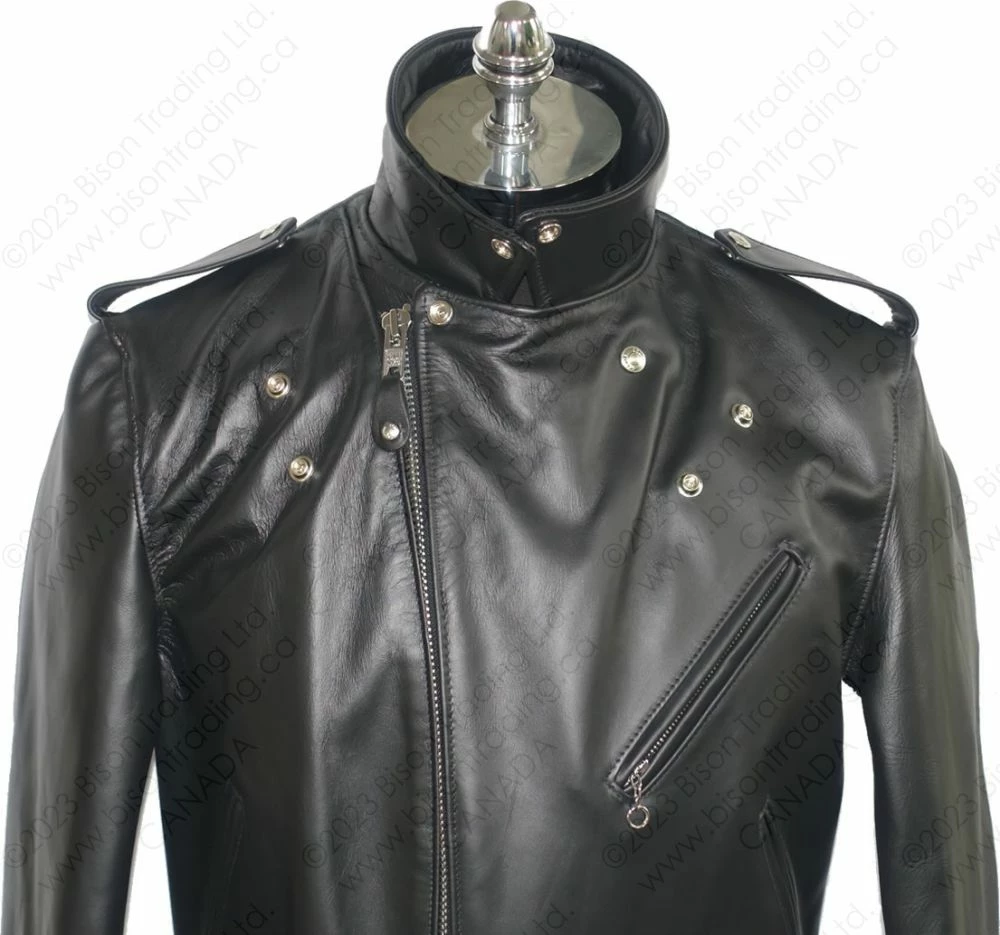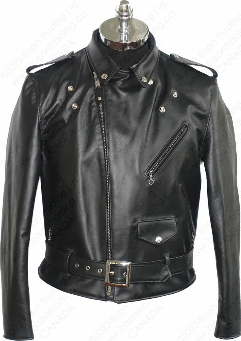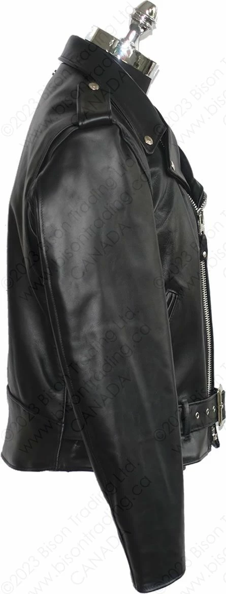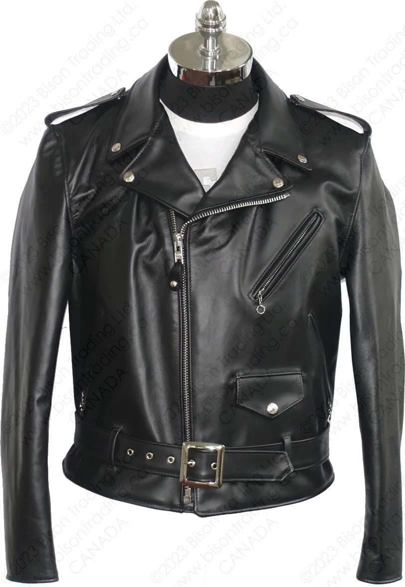 Our classic Perfecto jacket now available in black horsehide leather. Hand made right here in our factory. Similar to the 618, this jacket runs slim, so order one size larger than normal.