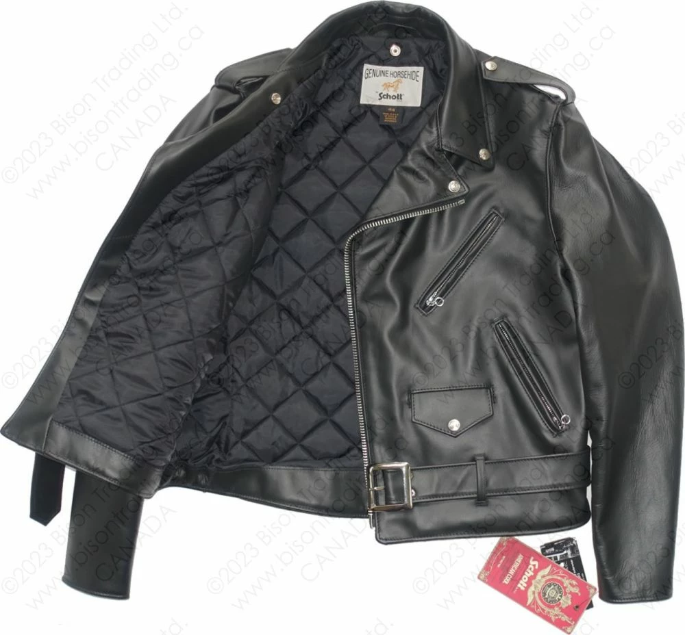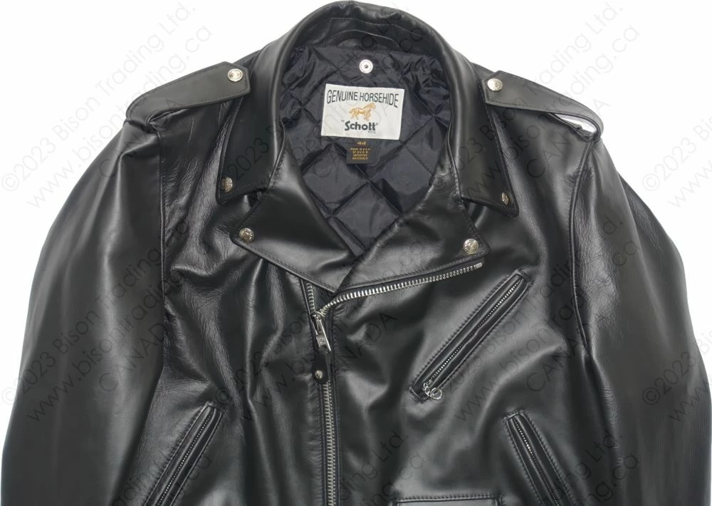 Schott NYC Classic Schott Racer Black Leather Motorcycle Jacket In Horsehide STYLE: 641HH