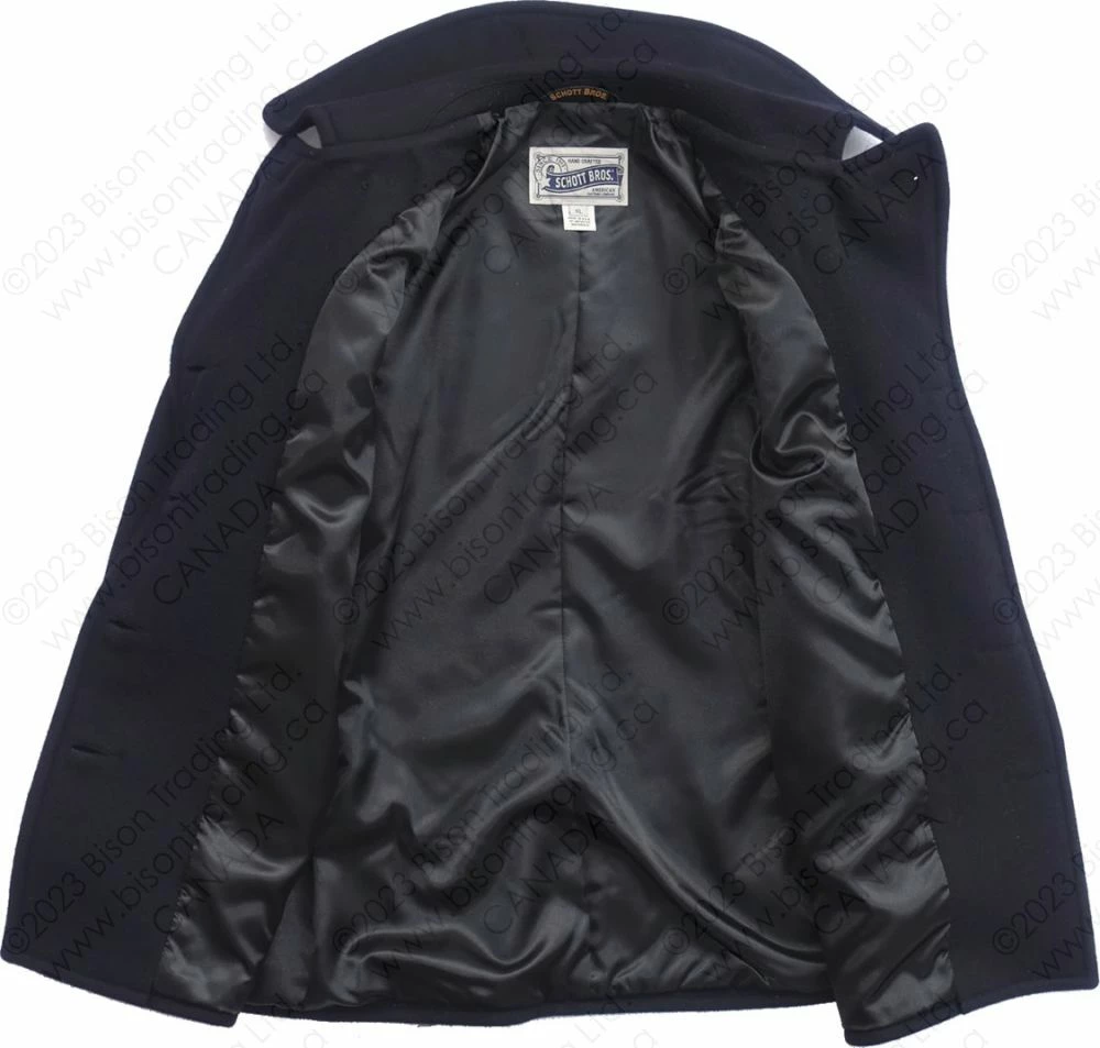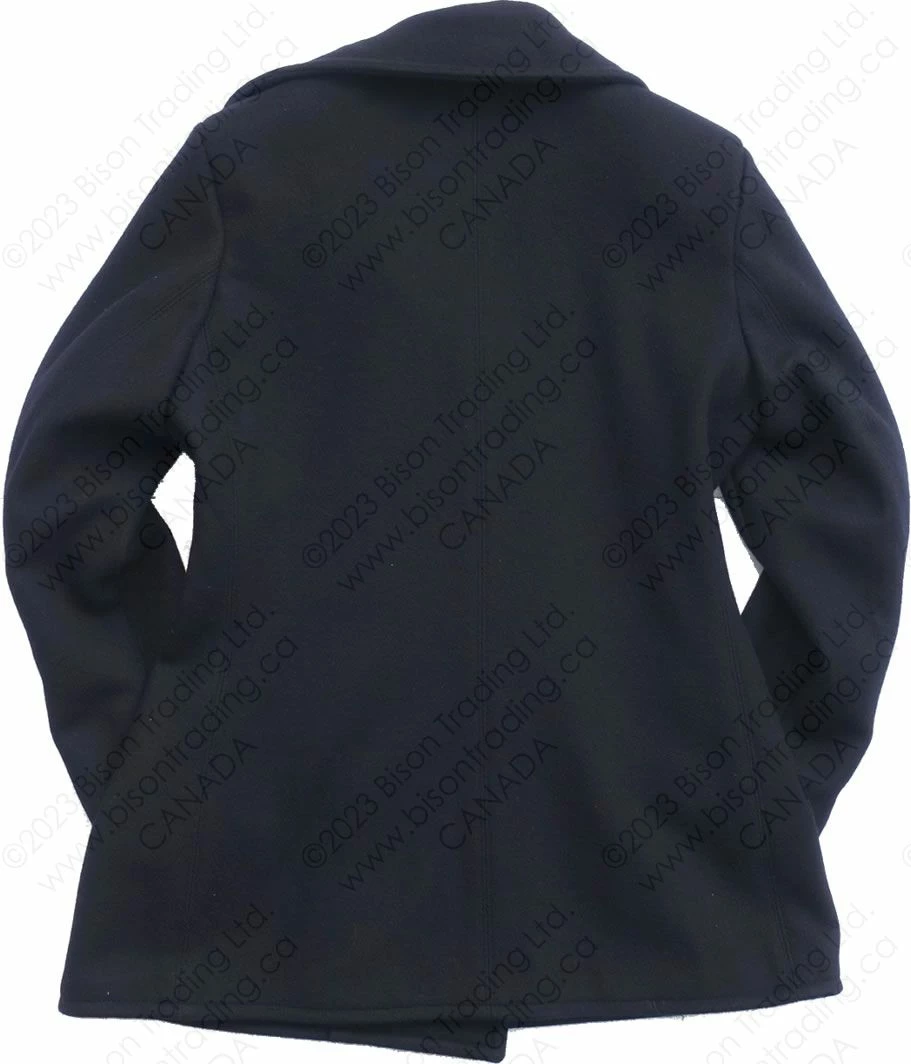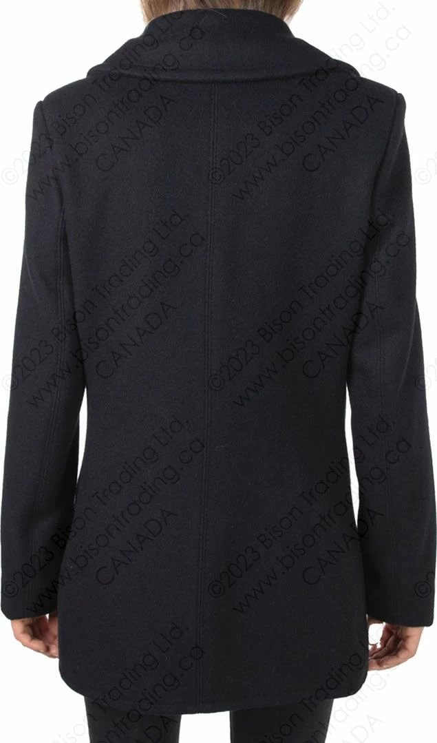Women’s 30″ 24 oz. wool blend slim fit peacoat with satin lining.